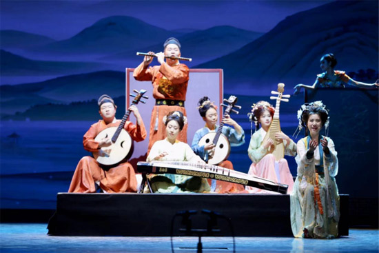 第一幕精彩纷呈:古曲《婆罗门引》作为唐代宫廷歌舞大曲,与《霓裳羽衣曲》渊源深厚,重现了胡汉乐舞交融的盛景;行乐《步步娇》以西安鼓乐套曲曲牌,采用“乱八仙”形式演奏,节奏快慢交替、灵动鲜活;清歌《遐方怨》由唐教坊曲演变而来,诉说出征将士妻子的殷切思念;清歌《鹊踏枝》则是一首采用拟人手法的唐代爱情歌曲,曲风活泼,含蓄地传递着闺中情思。