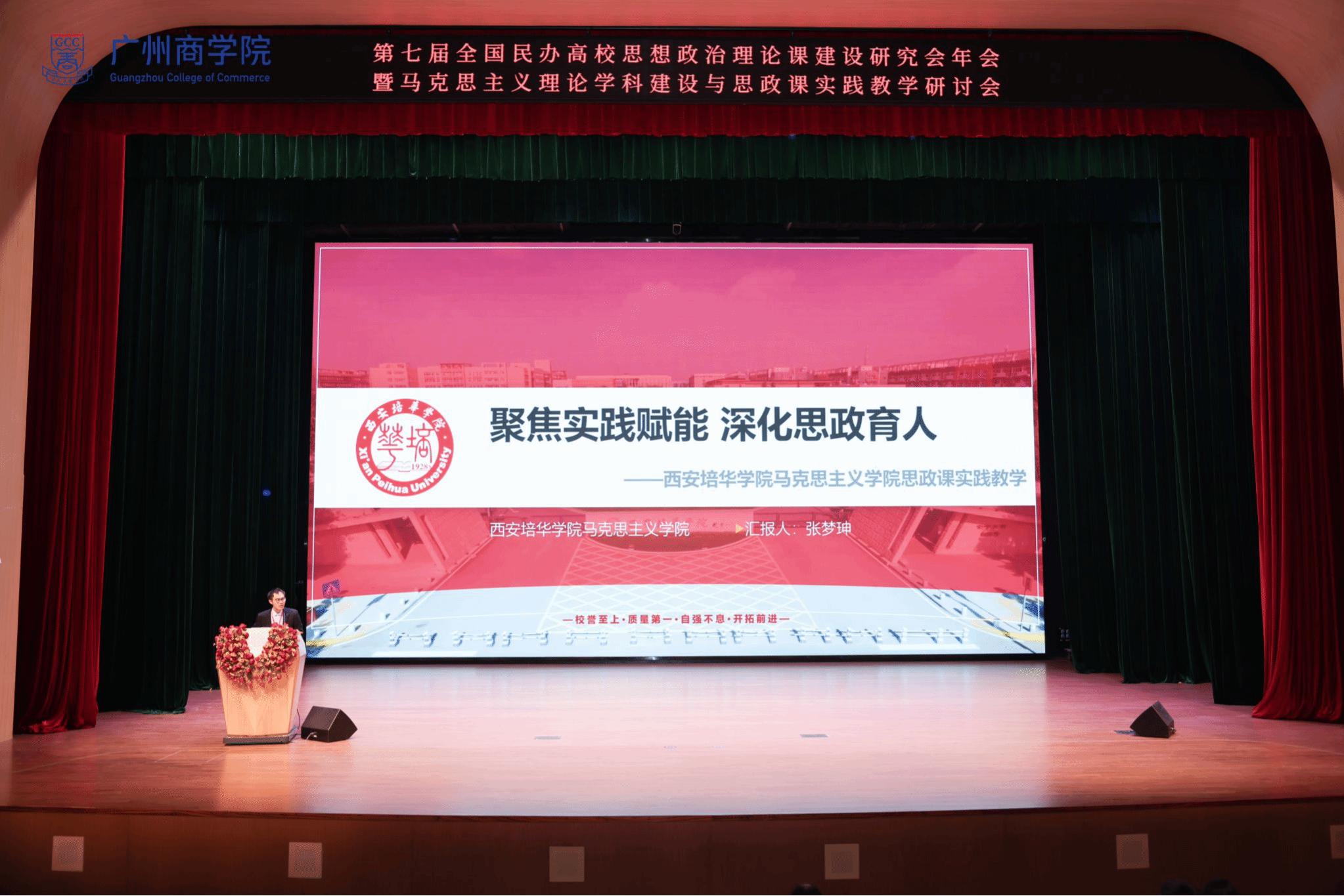 11月27日至29日,第七届全国民办高校思想政治理论课建设研究会年会暨马克思主义理论学科建设与思政课实践教学研讨会在广州成功举办。本次会议由全国民办高校思想政治理论课建设研究会主办,广州商学院承办,来自全国70多所高校的300余位专家学者齐聚一堂,围绕“贯彻落实党的二十届四中全会精神推动思政课高质量发展”展开深入研讨。西安培华学院马克思主义学院教师张梦珅受邀参会,并在思政课实践教学经验交流环节作专题汇报,全面展示了西安培华学院在思政课实践教学体系建设方面的创新探索与丰硕成果。