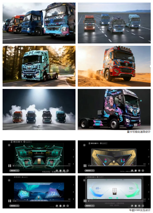 设计艺术学院打破传统专业界限,以“2025职业本科人才培养方案”为指导,将专业课程内容与企业岗位需求深度对接。三个本科专业团队围绕“人工智能赋能重卡视觉体验升级”这一核心方向开展协同创新。在设计创作过程中,师生团队运用人工智能生成内容(AIGC)及可视化渲染技术,将专业知识与企业文化深度融合,充分展现了职业本科学生的创新能力和实践水平。