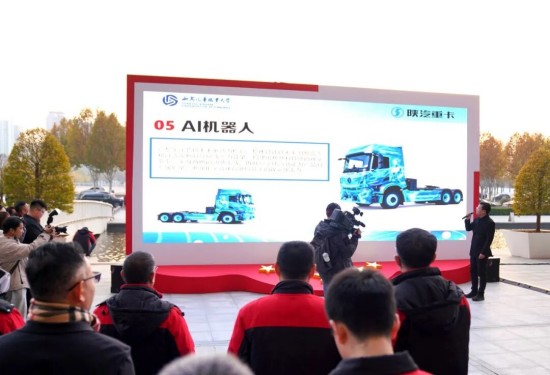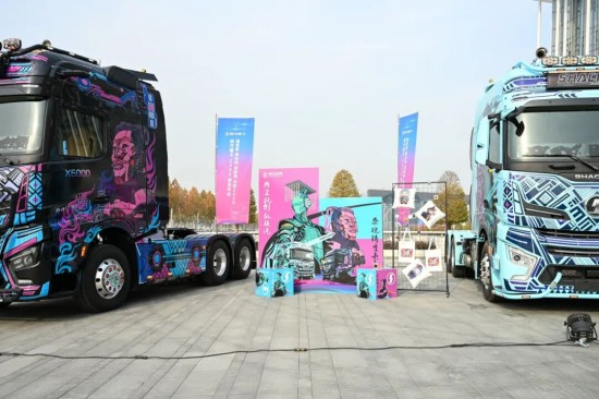 在年会现场,设计艺术学院院长李钰哲向陕汽控股集团党委书记、董事长袁宏明详细介绍了“卡车文化”系列设计作品,并带领企业代表实地观摩五大核心成果:车身涂装设计推出的9款融合国风元素与现代科技的光影渐变作品;重卡展示空间设计构建的沉浸式“卡车文化”体验场景;车载文创产品开发的多款实用型纪念周边;车载人机交互界面设计对驾驶安全与操作效率的优化;以及重卡可视化渲染设计产出的多样化传播素材。这些成果全方位满足了企业的多元化需求。