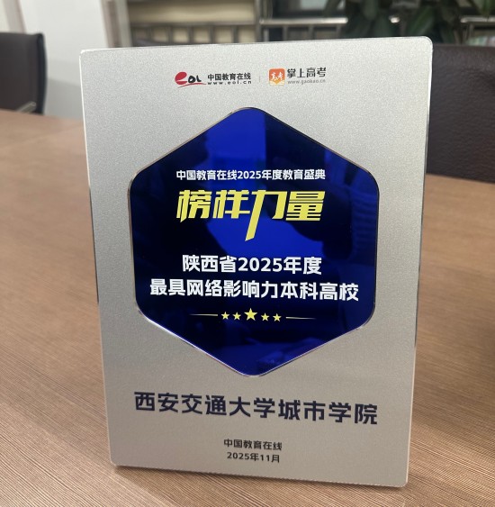 西安交通大学城市学院荣获“2025年度最具网络影响力本科高校”