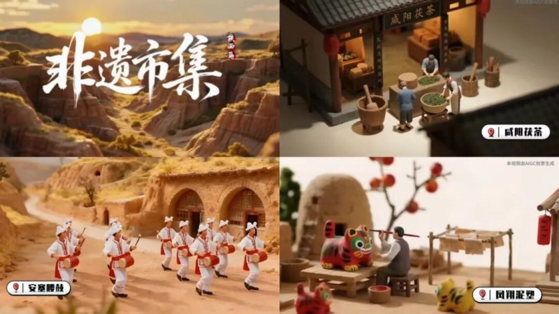 西安工业大学文学院新闻与传播专业硕士研究生团队凭借扎实的文化功底与鲜明的创新意识,在比赛中脱颖而出。其创作的AI短片《非遗市集·陕西篇》,深入聚焦陕西非物质文化遗产,以技术为翼、文化为魂,生动勾勒出一幅非遗市集的时代画卷。从脚本打磨到非遗展演设计,团队注重挖掘历史内涵,融合当代审美与传播规律,为传统文化注入新活力。决赛展演现场,凤翔泥塑、咸阳茯茶、华县皮影等陕西非遗实物也吸引了众多兄弟院校师生的关注。团队凭借深厚的专业素养、清晰的创新思路与沉稳的答辩表现,赢得了评审专家在文化深度、技术融合与实践价值等方面的高度认可,最终斩获一等奖。