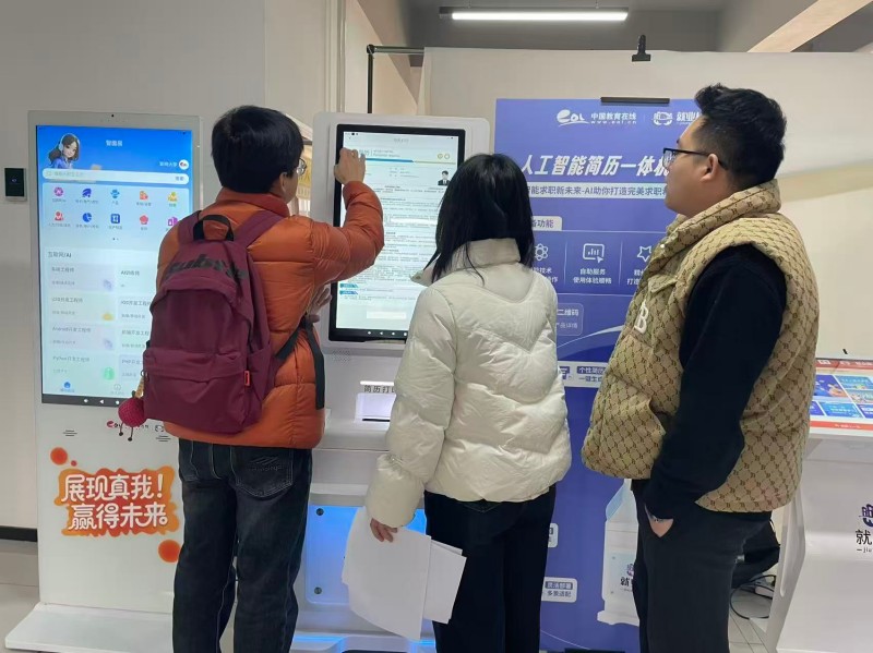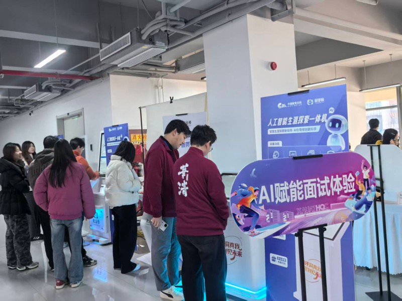 本次活动特别设置了AI面试体验区与职业形象指导区两大特色环节。在AI面试体验区,学生通过人工智能面试屏与AI面试官进行仿真对话,系统即时生成包含表达能力、逻辑思维、岗位匹配度等多维度的评估报告,不少学生表示“仿佛进行了一场真实的面试,反馈非常直观有用”。简历服务区同样人头攒动,学生们利用简历一体机快速生成或优化个人简历,并通过现场打印设备及时输出纸质简历,直接投递给心仪企业,实现了“即制即用、无缝对接”。