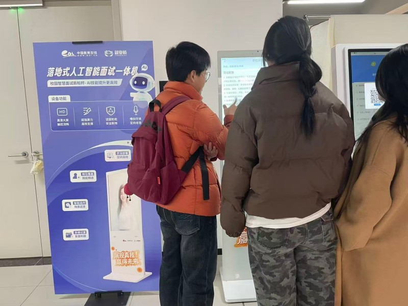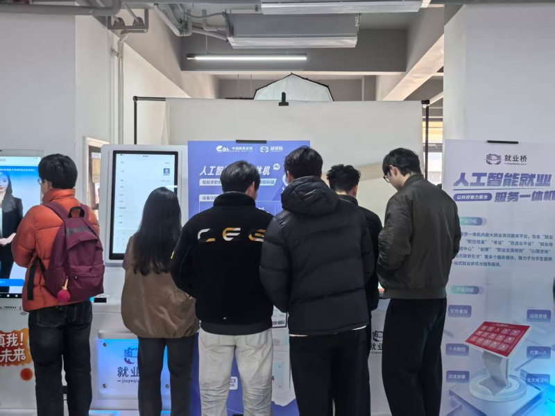 在招聘会现场,就业桥带来的四款智能设备各具特色,协同构建起“AI+就业”服务矩阵。人工智能面试屏(AI模拟面试一体机)搭载数字人面试系统,支持多岗位模拟面试与智能追问,实时生成面试报告,帮助学生复盘面试表现、优化应答逻辑;简历打印一体机(人工智能简历一体机)内置智能简历生成与优化系统,支持一键生成、AI润色、模板设计与快速打印,助力学生打造专业简历;生涯探索一体机依托AI职业咨询师系统,为学生提供个性化的生涯测评、职业探索与规划指导,辅助学生明确发展方向;就业服务一体机则整合全网就业资讯、招聘信息、考证考研等多元内容,实现岗位精准推荐与信息一站式获取,大幅提升求职效率。