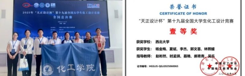 由中国化工学会、中国化工教育协会主办,天津大学承办的第十九届全国大学生化工设计竞赛全国总决赛在天津顺利举办。竞赛自2007年创办以来,已成为国内化工领域规模最大、影响力最广的年度学科竞赛之一。2025年赛事聚焦“创新驱动、绿色发展”。来自全国479所高校的4337支队伍参赛,参赛人数超2万人。西北大学化工学院代表队获全国一等奖、二等奖、三等奖各1项。