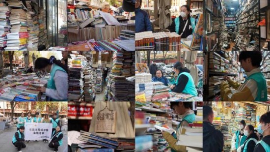 调研首站聚焦兴善寺西街旧书市集,作为西安首个经官方允许并统一规划的旧书摊集中区域,这里是当地旧书流通的核心场所。团队成员分3组沿雁塔区第一幼儿园至大兴善寺东门路段展开走访,该路段全长700余米,其中约230米的临街区域分布着28个固定旧书摊位,涵盖旧书、线装古书、绝版杂志、连环画等品类,不乏20世纪80年代竖版文学作品集、民国教材复刻本等市面少见书籍。调研小组在与摊主交流中,重点记录了旧书市集的经营情况。