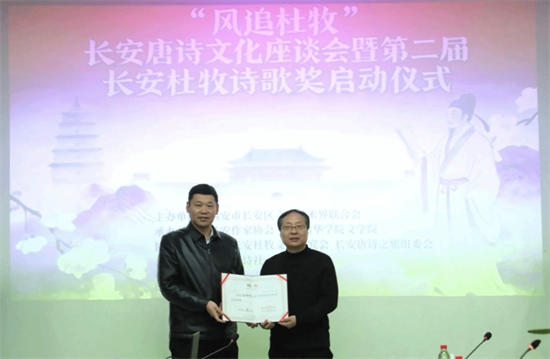 为深入挖掘与传承中华优秀传统文化,赓续长安唐诗千年文脉,2025年12月26日,“风追杜牧”长安唐诗文化座谈会暨第二届长安杜牧诗歌奖启动仪式在西安培华学院举行。本次活动由西安市长安区文学艺术界联合会主办,由西安培华学院文学院与长安作协承办,西安长安杜牧文化研究会、长安唐诗之旅组委会、乐游原诗社协办。50余位专家学者、诗人及文化工作者齐聚一堂,共话唐诗当代传承,共启诗歌盛事新篇。