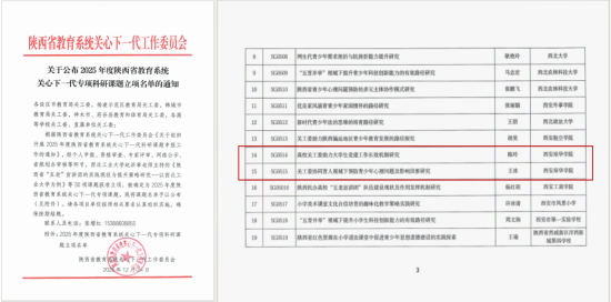 学校两项课题获2025年度陕西省教育系统关心下一代专项科研课题立项