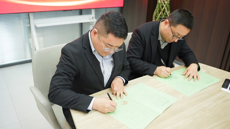 上午11时40分,签约仪式正式举行。在全体参会人员的见证下,BridgeReel创始人李想与吴航行副院长代表双方签署合作协议并交换文本,标志着校企合作进入实质性推进阶段。随后,全体人员合影留念,记录下这一重要时刻。