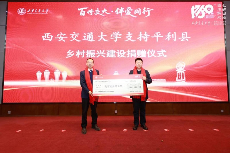 为助力乡村振兴,践行社会责任,教育基金会代表学校向对口帮扶的安康市平利县捐赠160万元,用于支持磨沟村道路建设,平利县副县长周洋弘代表接受捐赠。