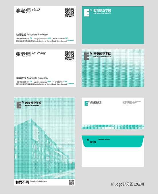 2022年,伴随学校再迈新阶段,欧亚对学校Vl进行全面焕新。logo在保留原有视觉识别的基础上,将中、英文校名排列在指数序列,更加突显E这一核心主体。