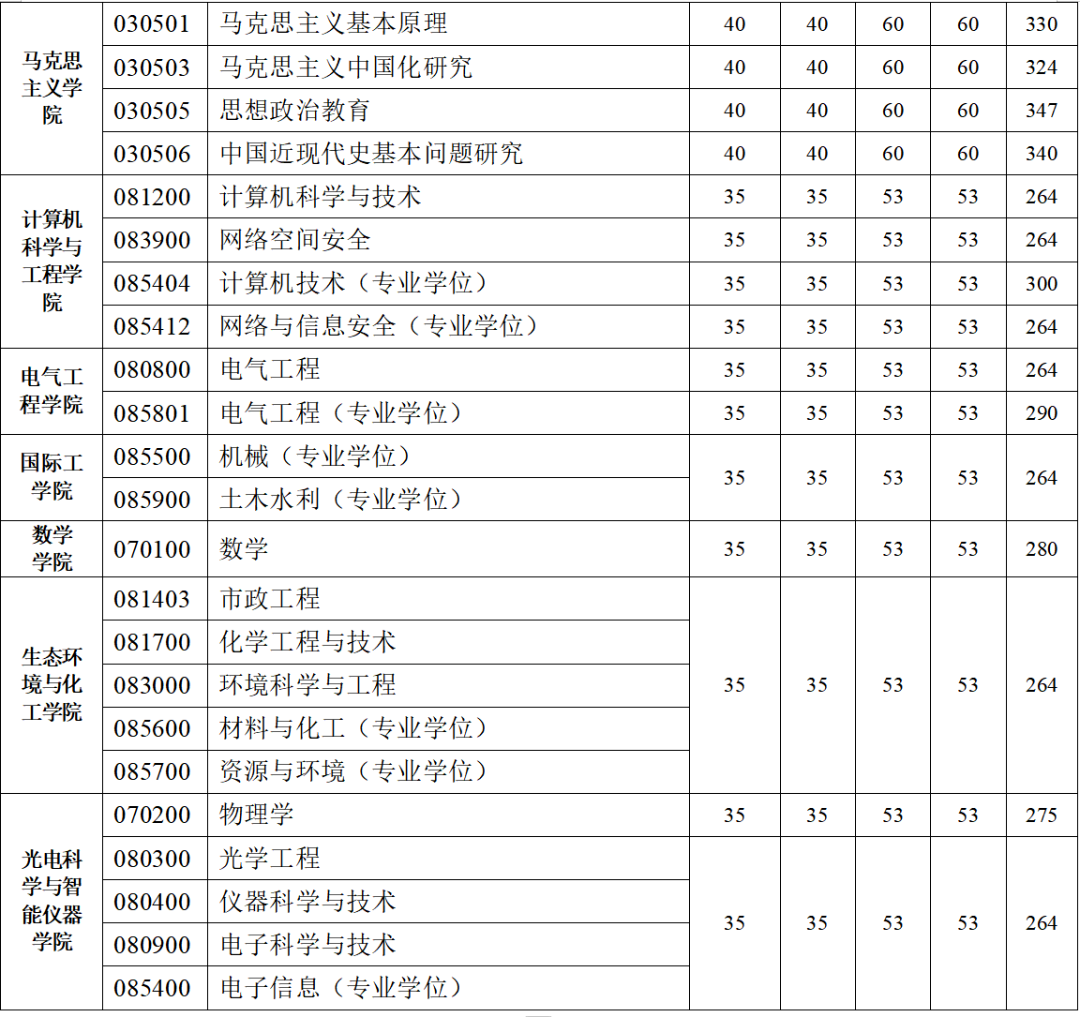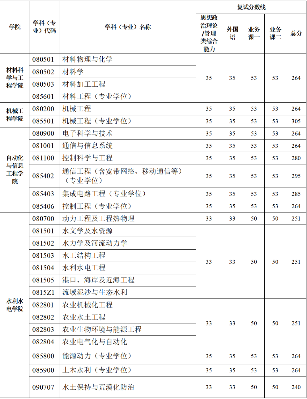 注:1.退役大学生士兵计划复试基本分数线为各学科门类、各专业学位类别(领域)国家A类线总分下降20分,不设单科分数线;