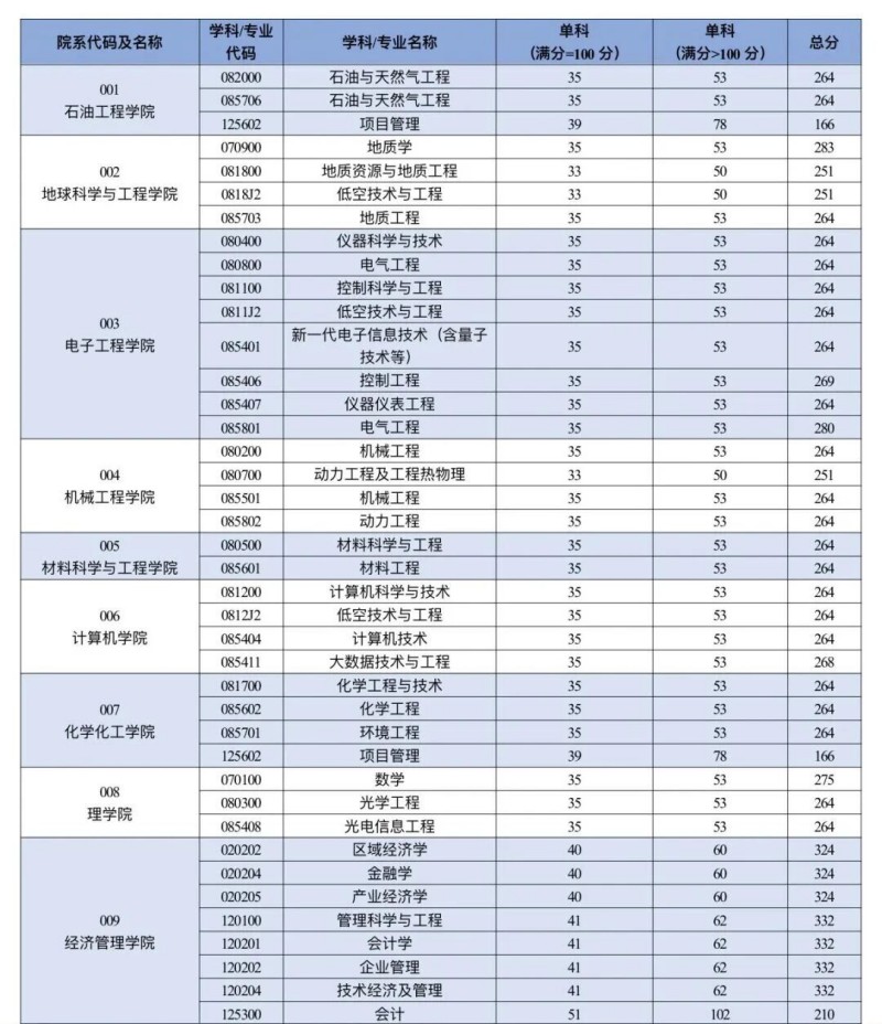 根据教育部及陕西省教育考试院相关文件精神,结合研究生招生工作实际,现将西安石油大学2026年硕士研究生招生考试复试分数线公布如下: