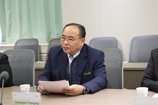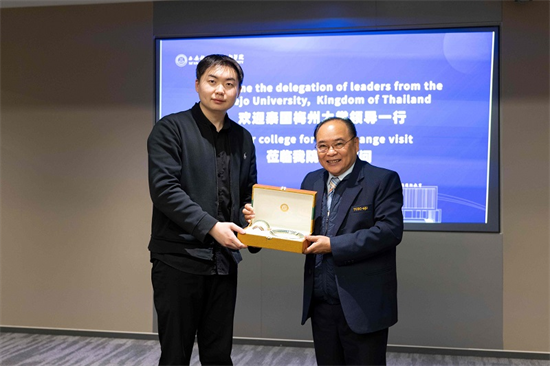 Weerapon Thongma 校长对我院的热情接待表达感谢后,高度评价了学院在高等教育领域秉持“应用型、国际化”人才培养理念所取得的突出成效。随后,他介绍了梅州大学的发展历程、学科特色、奖学金项目及其与中国高校的合作情况。他表示,两校有着深厚的交往渊源,期待以此次访问为契机,开启两校长期合作的新篇章。