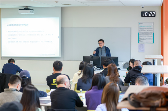 基于德鲁克的企业生存四大法则,胡建波介绍了欧亚艾德艺术设计学院工作室制教学转型、春山里产教融合空间建设等实践案例,坦言“企业的首要目标是生存,唯有主动放弃无价值业务,持续迭代、放大成功、自我颠覆,深入一线找客户痛点,才能穿越行业周期”。在他看来,企业员工要具备“将内隐知识外显化的能力”,“因为新的场景、新的业务,都需要内隐知识的支撑,而这些知识只有一线的现场人员才能掌握,并形成知识生产的螺旋,这也是现场主义的核心。”