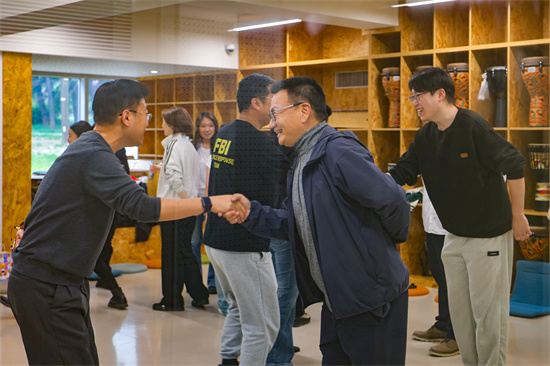 2025年10月落成的春山里,不仅为学生提供了高品质的住宿环境,更是欧亚激发师生创造力、促进跨学科交流的重要场域。在黄飞春工作室、工商管理学院触创中心等驻校艺术家和产教融合空间,姚振华一行了解了欧亚主动打破教育边界,深度对接行业资源,让办学与真实产业需求紧密联结的创新实践。