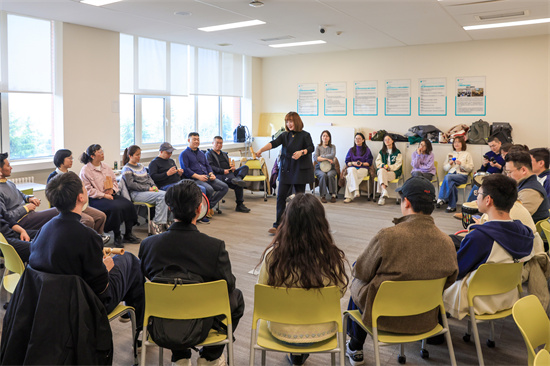 近年来,人文教育学院不断改革课程体系,致力于促进中国儿童教育行业理念与教育教学技术的创新与变革。当天下午,学院特别为新东方参访团队准备了“欧亚课程体验卡”,邀请大家亲身参与以音乐、绘画和舞蹈为主题的疗愈工作坊,在身体力行的肢体与行为表演中,觉察生命本真和人文教育的实践价值。