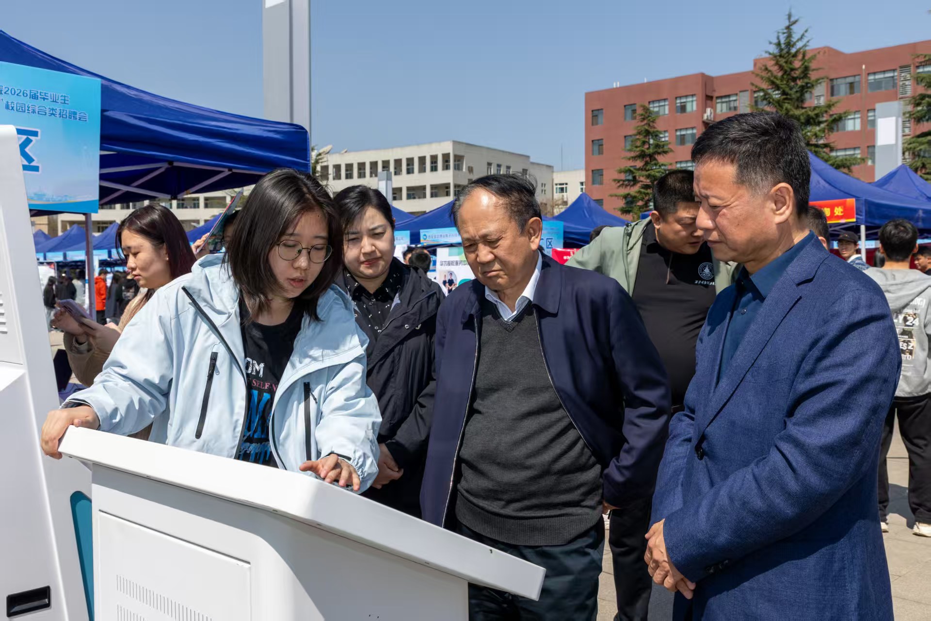 在本次招聘会现场,我们特别设立了“AI就业赋能展区”,集中展示多款人工智能就业服务一体机,为同学们提供智能化、系统化的求职支持。展区设备深度融合 “生涯规划—简历优化—面试辅导—岗位匹配” 四大关键环节,打造一站式就业服务平台,帮助同学们精准破解求职难题,提升就业竞争力。