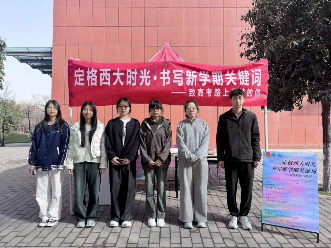 春风漫过长安校区的玉兰花瓣,长安的风里满是春日的温柔。3月22日9:00-17:00,西北大学“西引力”本科招生宣传志愿者协会在长安校区学生活动中心南侧,举办了「定格西大时光,书写新学期关键词」主题外展活动。西大学子们以笔为媒,写下对高考学子的真挚寄语,定格属于自己的西大时光,用一份份温暖心意,为即将奔赴考场的少年们,送上来自百年西大的鼓励与邀约。
