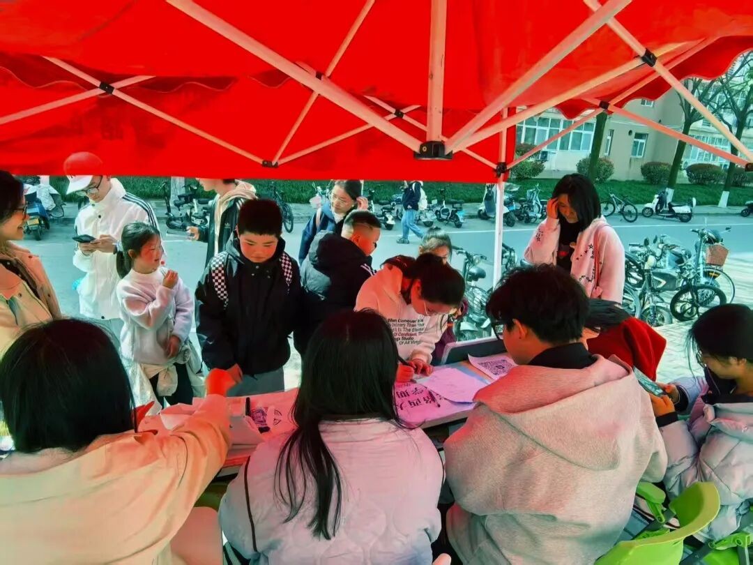 活动当天,志愿者们早早抵达现场,细心布置好活动场地。干净整洁的展桌、印着西大玉兰元素的便签纸、整齐摆放的书写笔,还有提前整理好的寄语参考卡,在春日的阳光下,构成了校园里一道治愈又温暖的风景线。