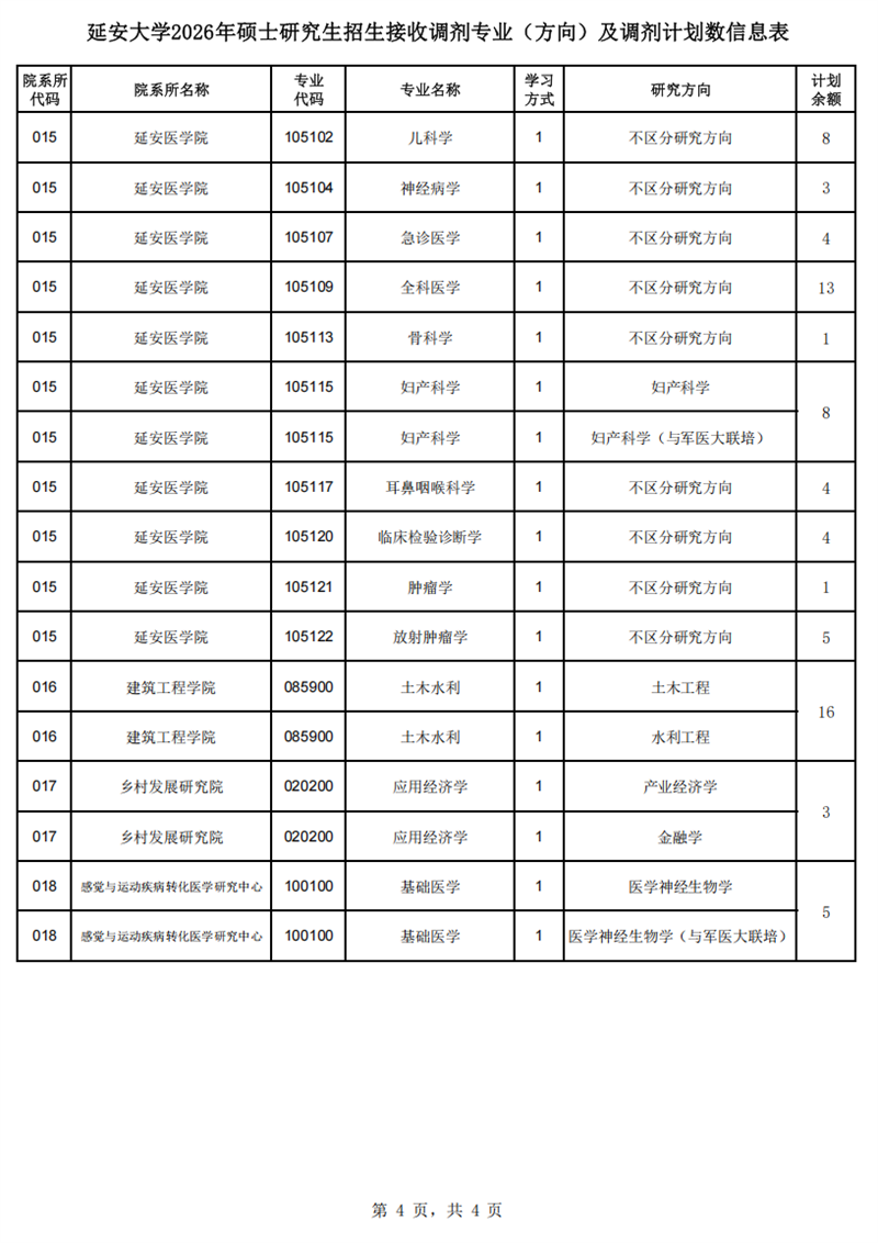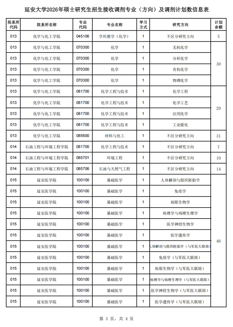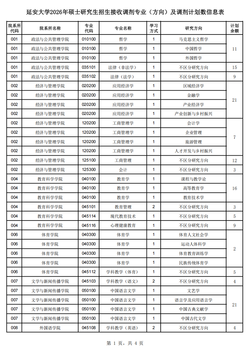 (三)延安大学将根据招生录取实际情况适时调整调剂的专业(方向),最终以调剂系统公布为准。