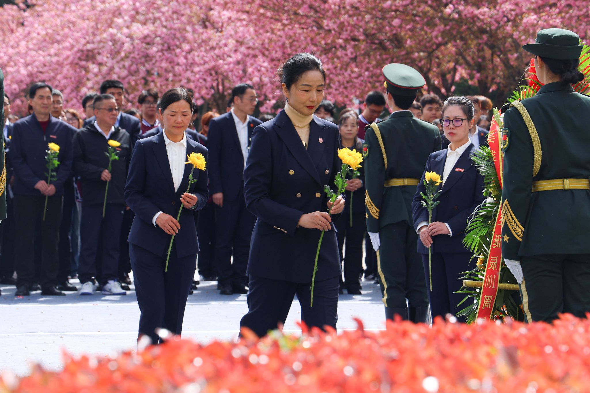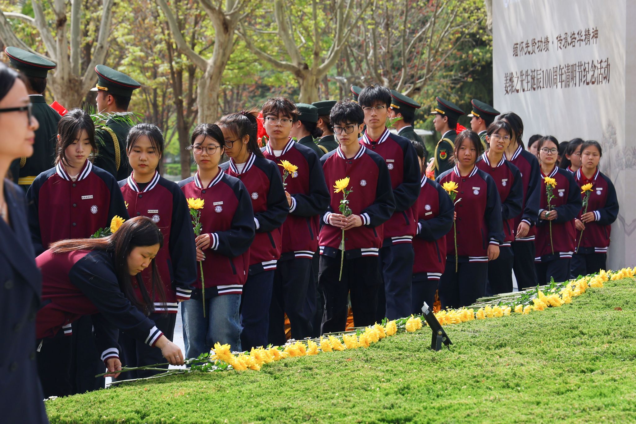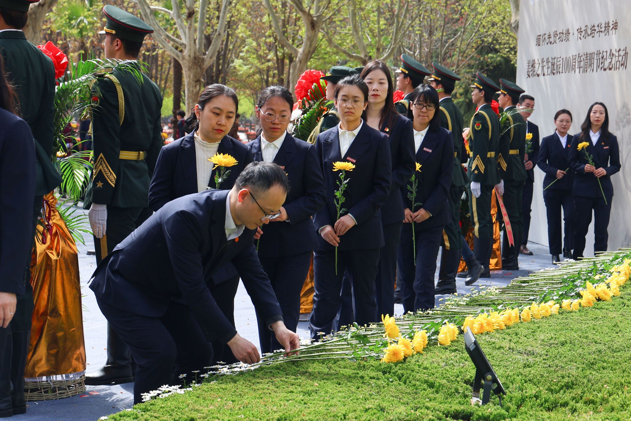 敬献花篮结束后,全体人员肃立,行三鞠躬礼,致敬老校长兴学育才之功、初心不改之德、精神永续之志。