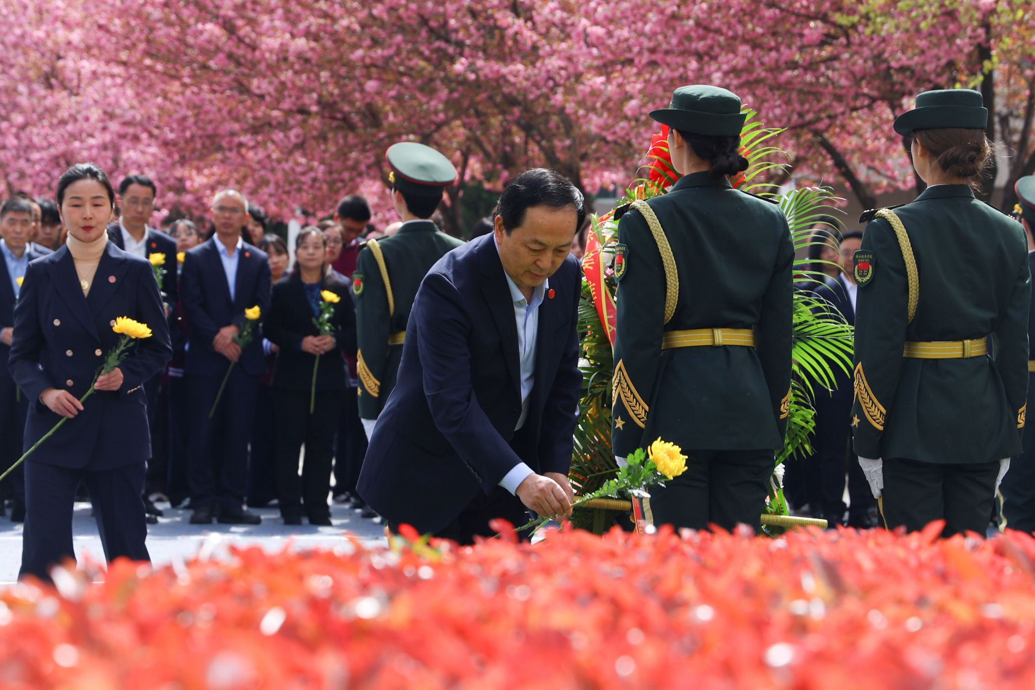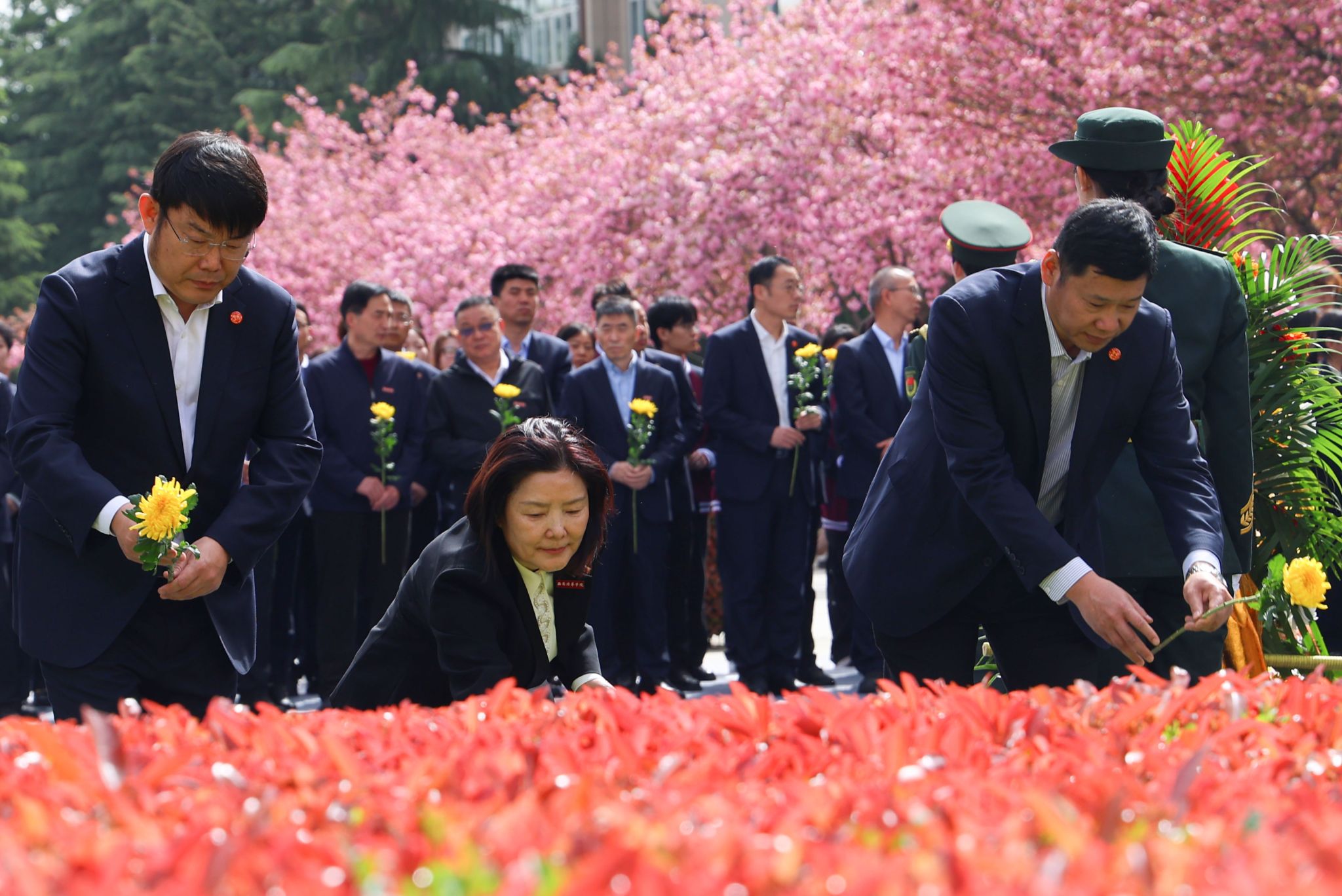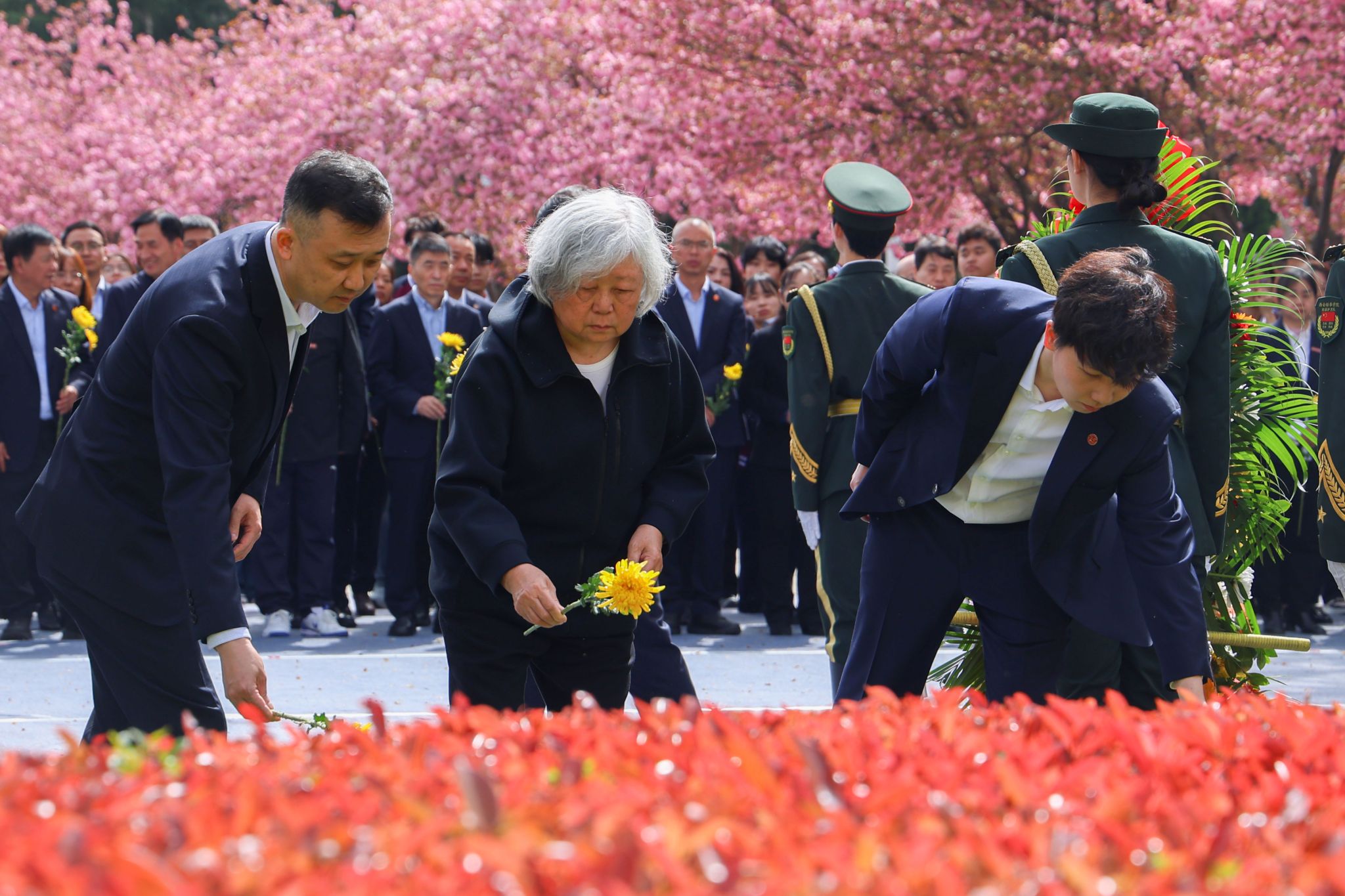 敬献花篮结束后,全体人员肃立,行三鞠躬礼,致敬老校长兴学育才之功、初心不改之德、精神永续之志。