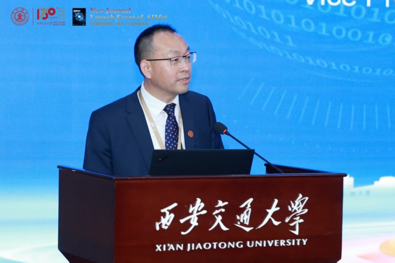 张立群为发布会致辞。他表示,当前,世界百年未有之大变局加速演进,科技竞争日趋激烈,信息技术迭代升级、飞速发展,正深刻重塑全球科技格局、拓展科学研究边界。信息材料作为连接信息科学与材料工程的核心纽带,是推动新一代通信、智能计算、量子技术等战略性新兴领域发展的关键支撑和核心基石,更是我国实现科技自立自强、突破关键核心技术的重要领域。AIMat聚焦这一前沿交叉领域,致力于搭建一个汇聚全球顶尖学者智慧、推动学科交叉融合、促进学术成果转化的高水平国际学术交流平台,推动提升信息材料领域学术水平,促进国际学术合作交流。西安交大力争将其打造为具有重要国际影响力的一流学术期刊,让世界听到中国材料科学的声音,让交大的学术传统在新时代焕发新的生机与光彩,为全球信息材料领域高质量发展、人类科技进步贡献智慧和力量。