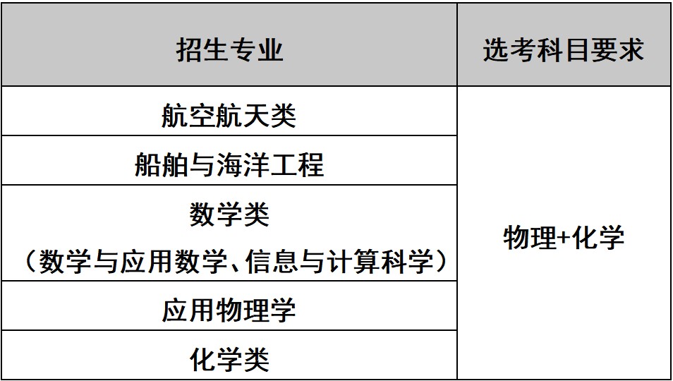 结合西北工业大学相关专业优势与办学特色,强基计划招生专业有航空航天类、船舶与海洋工程、数学类(数学与应用数学、信息与计算科学)、应用物理学、化学类。