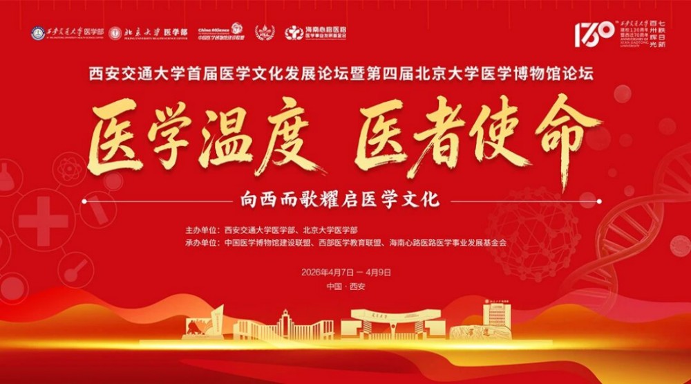2026年4月7至9日,西安交通大学首届医学文化发展论坛暨第四届北京大学医学博物馆论坛,在西安交通大学举行。本次论坛由西安交通大学医学部、北京大学医学部联合主办,中国医学博物馆建设联盟、西部医学教育联盟、海南心路医路医学事业发展基金会联合承办,以“医学温度 医者使命——向西而歌耀启医学文化”为主题,汇聚院士专家、行业领袖与青年学者,共话医学文化传承、共商医工交叉融合、共谋数智医学发展。累计吸引来自全国高校、医疗机构、文博单位及企业界的线下参会代表700余人,论坛同步直播,线上观看总人次达147万人次。