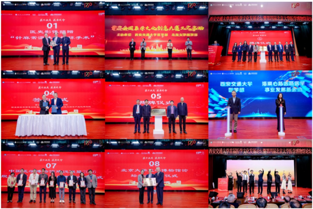 仪式现场举行“针麻常温体外循环手术”医史影像捐赠、首届全国医学文化创意大赛启动、西部医学教育联盟医学思政与人文教育子联盟成立、“西安交通大学第一附属医院-西咸新区华西慧创微电子技术产业化研究院医工结合产业化研究院”签约、西安交通大学国家技术转移中心-保山咖啡健康与文化协同创新中心揭牌、校企协同发展活动启动、中国医学博物馆建设联盟2026规划发布及专家顾问聘书颁授、北京大学博物馆论坛交接等系列活动。医学情景文化剧《烛照秦川》《侯宗濂》同步上演,以文艺形式生动诠释医者精神。