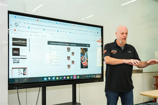 哈雷学院项目负责老师麦尔旦·麦麦提卡热,就哈雷戴维森培训学院的课程设置、实训安排等相关情况进行讲解,为师生搭建了解培训项目、对接职业需求的重要平台。