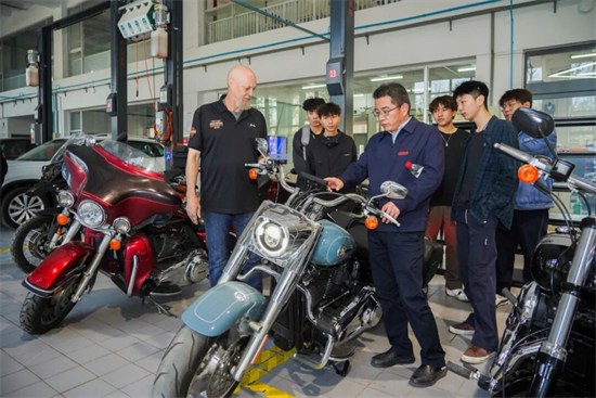 座谈会结束后,哈雷戴维森企业一行在学校相关领导的陪同下,先后参观了学校华为项目中心、新能源汽车实训中心及校企合作实训中心,详细了解学校实训基地建设、教学实训开展及产教融合项目推进情况,对学校完善的实训设施、务实的办学理念给予进一步肯定。