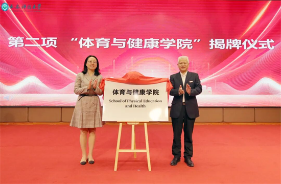 李臻、邓军共同为学院揭牌,宣告“体育与健康学院”正式开启新的征程。