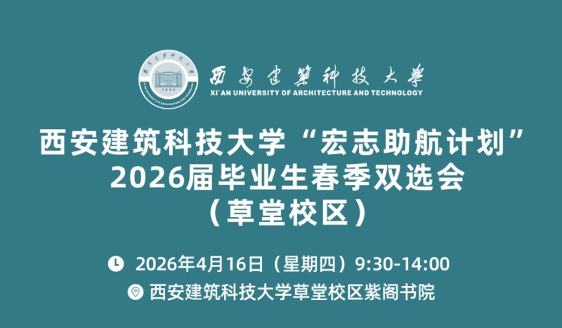 4月16日,西安建筑科技大学“宏志助航计划”2026届毕业生春季双选会在草堂校区顺利举行。作为学校促进毕业生高质量就业的重要举措,本次双选会吸引了众多用人单位与应届毕业生齐聚一堂,在春日校园里开启了一场有温度、有科技、有实效的双向奔赴。