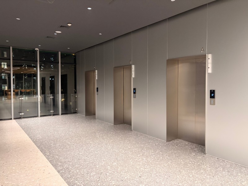 在不断的提问与回应中,提案被逐渐校准为更具可行性的路径:将5部客梯由集中运行模式调整为高低区分控模式——3部负责12层至20层高区运载,2部负责3层至11层低区运载,同步取消2层停靠,增加"下集选"功能,提升整体运力;消防电梯在客流高峰期作为备用梯投入运营,进一步缓解压力。