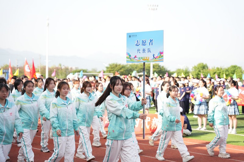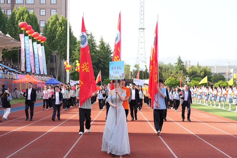 上午8时30分,伴随着激昂的《运动员进行曲》,开幕式正式拉开帷幕。国旗护卫队迈着铿锵有力的步伐率先入场,他们英姿飒爽、目光如炬,守护着鲜艳的五星红旗走过主席台。紧随其后的是裁判员方阵以及万钧、至诚、行健、创业、博雅、允能等六个书院代表队依次入场。他们精神抖擞、意气风发,各书院方阵结合专业特色与“一院一品”文化,通过创意十足的队列变换与道具展示,充分彰显了西京学子“敢拼搏、善协作、勇超越”的昂扬风貌。
