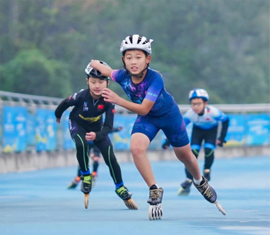 选手们在赛道上你追我赶、观众在场边呐喊不断。比赛首日,超过2500名观众齐聚轮滑场,为小选手们加油助威,现场气氛热烈。经过两天激烈角逐,自由式轮滑项目中,刘一鸣、张可分获速度过桩男、女个人冠军;速度轮滑项目中,陈玥庭、贾沐霖分别夺得男子500+D米、1000米专业组冠军,白奕航、黄子怡分别获得女子500+D米、1000米专业组冠军。