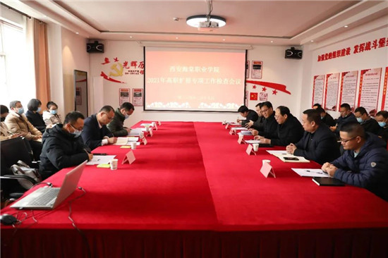 随后,杨国峰部长从学院总体情况、重点项目落实情况、存在问题、典型做法、整改措施等五个方面详细汇报了西安海棠职业学院高职扩招教育教学工作。