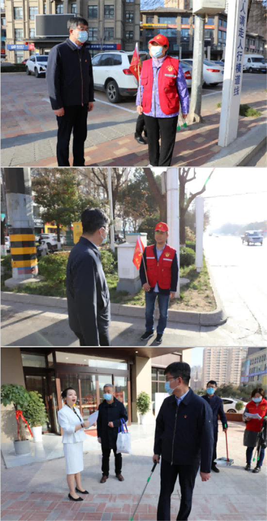 在文明交通劝导服务路口靳华锋亲切慰问执勤志愿者,叮嘱他们春寒仍在,注意保暖,带好口罩,做好个人防护。他全面检查路段创建工作,有针对性的对部分门前“四包”落实不到位的商户进行宣传劝导。随后,靳华锋与志愿者一起清理花坛、绿化带、砖缝等卫生死角内的白色垃圾、烟头等。