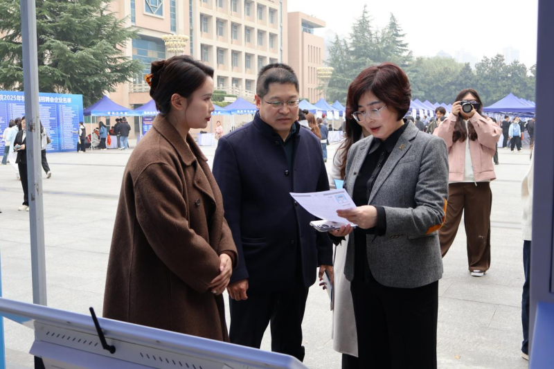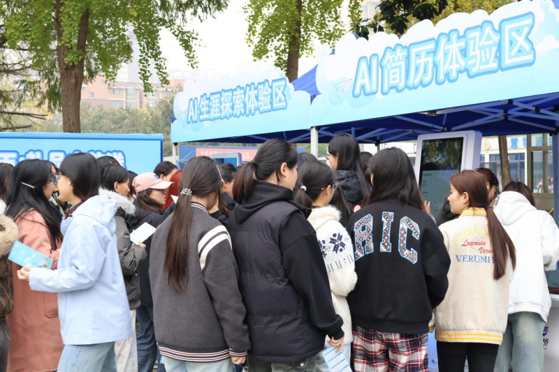 活动期间,学校孙副校长等一行领导亲临现场视察指导,重点走访了“AI赋能区”,详细了解四台智能设备的运行情况。该区域配备的人工智能简历一体机、AI模拟面试一体机、生涯探索一体机和就业服务一体机,分别提供简历智能生成与优化、多场景面试模拟与评估、个性化职业规划指导、实时招聘信息推送等一站式就业服务,有效提升了学生的求职技能与职业认知。
