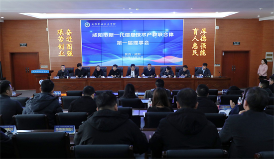 12月26日,咸阳市新一代信息技术产教联合体第一届理事会在咸阳职业技术学院院务楼二楼多功能报告厅举行。咸阳高新区党工委委员、管委会副主任琚晓涛,咸阳职院党委副书记赵维,中共咸阳市委网信办总工程师郭伟超、网安科科长阴国峰,咸阳市教育局四级调研员李敢创,咸阳市工业和信息化局四级调研员马亚鹏,高新区管委会科技创新局局长冯伟,彩虹显示器件股份有限公司规划科技部经理李聪,咸阳师范学院、陕西财经职业技术学院等6所院校代表,咸阳彩虹光电科技有限公司、冠捷显示科技(咸阳)有限公司等57家企业代表,以及咸阳职院相关处室、信息工程学院负责人和教师代表参加。会议分为理事会议与产教融合发展论坛两个阶段。