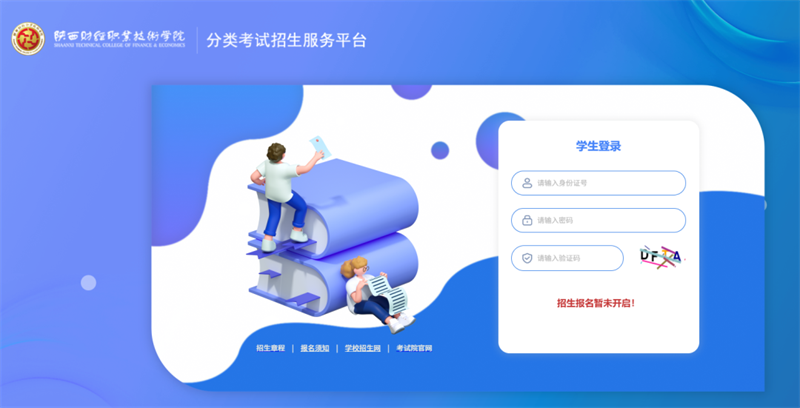 2026年2月9日9:00至2月11日17:00,考生须登录陕西省教育考试院门户网站(网址:https://www.sneea.cn)或陕西招生考试信息网(网址:http://www.senac.com) 向陕西财经职业技术学院提出入学申请。