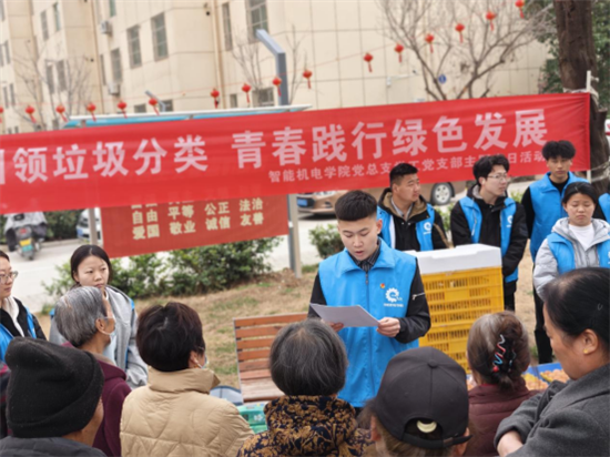 3月4日上午,该校智能机电学院组织师生志愿者走进文林小区展“青春志愿行 奋进‘“十五五”’”主题便民志愿服务活动。活动现场,志愿者们通过现场讲解、互动问答、发放宣传资料等方式,向居民普及垃圾分类的意义、方法和技巧,帮助大家树立绿色环保理念。活动还设置了“参与有礼”环节,向踊跃参与的居民发放鸡蛋、纸巾等实用小礼品,现场气氛热烈,互动频繁,居民纷纷表示“接地气、有收获”。