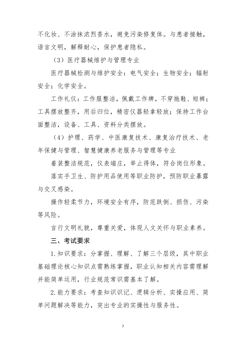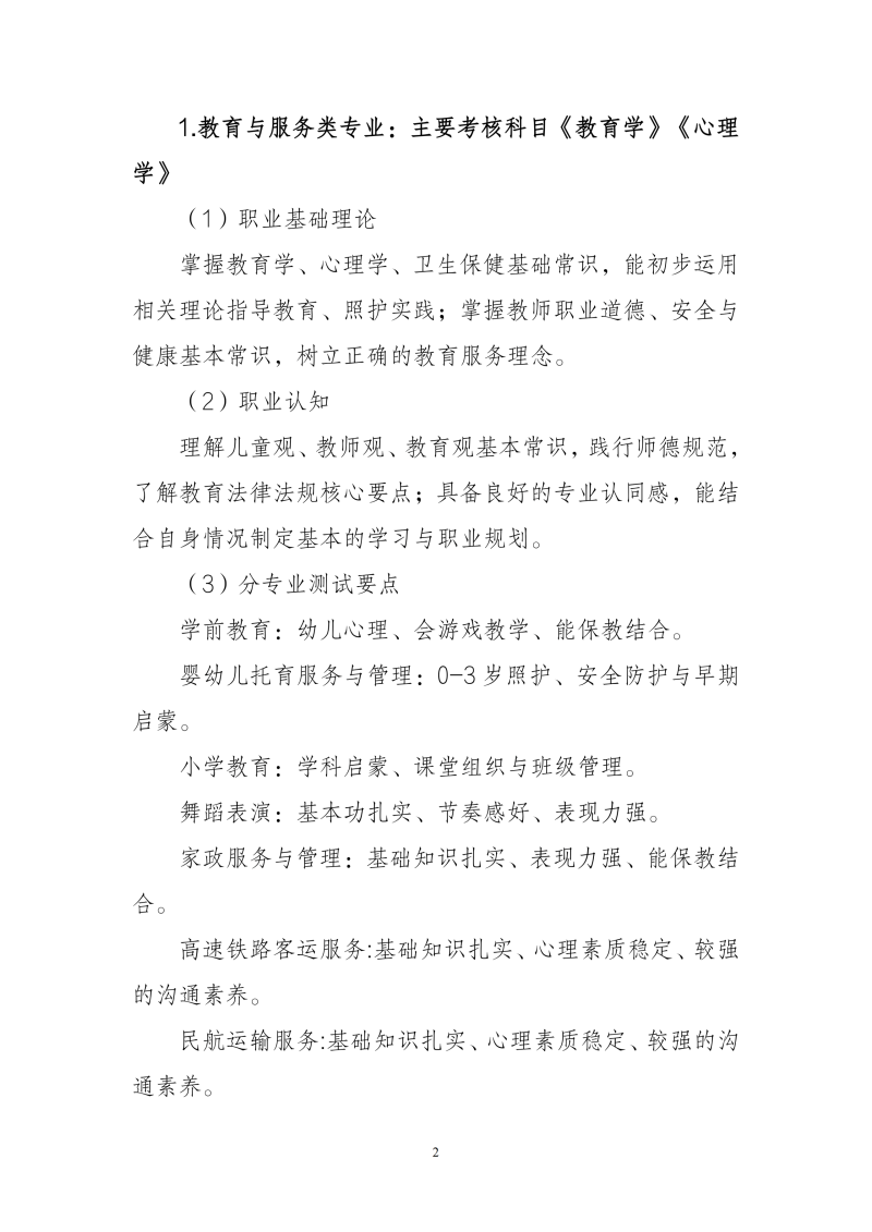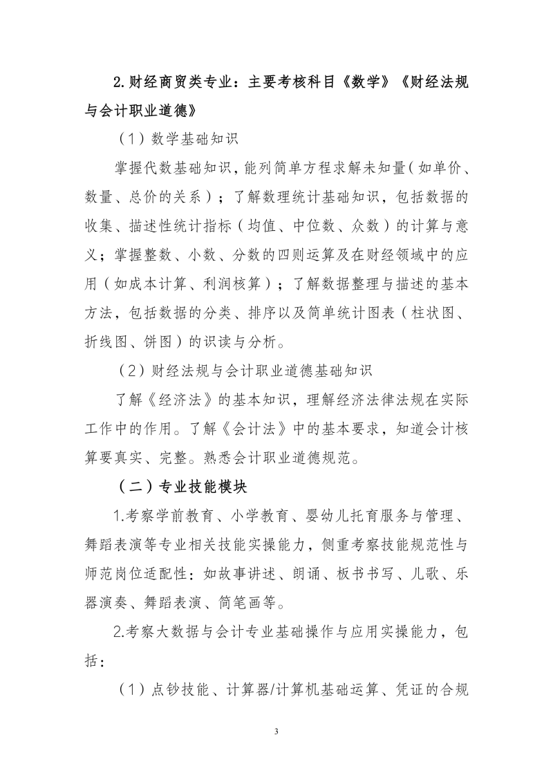 商洛职业技术学院2026年分类招生各专业考核大纲