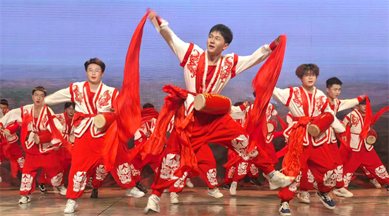 学生在文艺晚会表演腰鼓