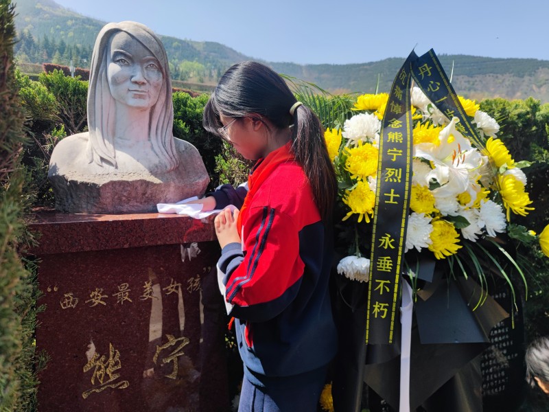 同日,该校携手邵平店小学带领45名师生前往“西安最美女孩”熊宁纪念园开展祭奠活动,师生们怀着无比崇敬的心情祭奠这位用生命诠释大爱无疆的“时代楷模”。大家整齐列队,向熊宁雕像鞠躬献花,深切缅怀她热心公益、扶贫济困、无私奉献的崇高精神。