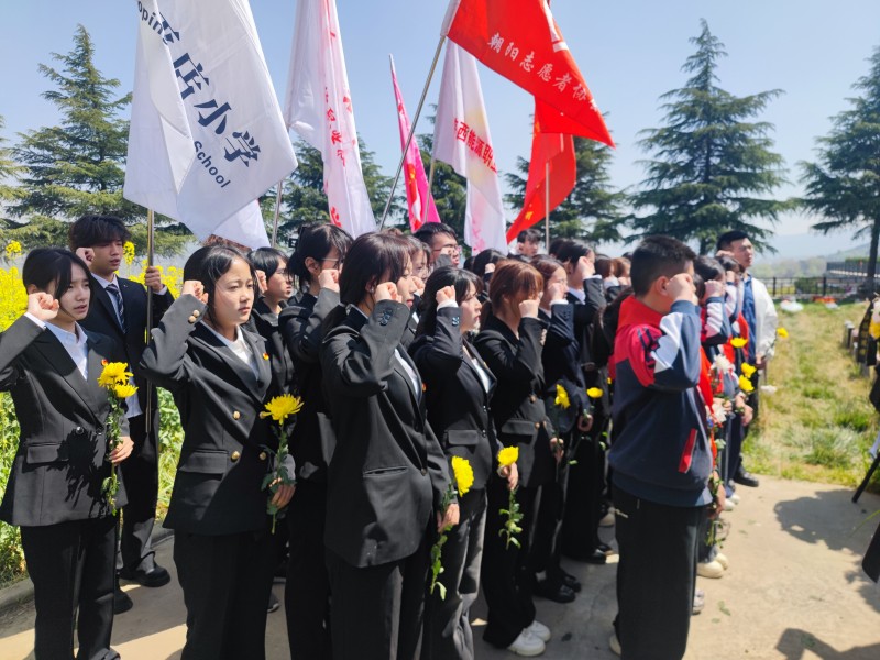 4月1日、2日下午,该校校团委组织医学技术学院、能源化工学院、人文教育学院师生代表前往咸阳烈士陵园开展清明祭英烈活动。师生们饱含着对革命先烈的崇敬之情高唱国歌,肃立默哀,向为民族独立、人民解放和国家富强英勇献身的革命先烈致以深切悼念。向革命先烈敬献花篮、整理缎带、鞠躬致敬,深切寄托对英烈的哀思。团员青年面向团旗重温入团誓词,铮铮誓言响彻陵园,彰显着新时代青年传承红色基因、续写红色篇章的坚定决心。