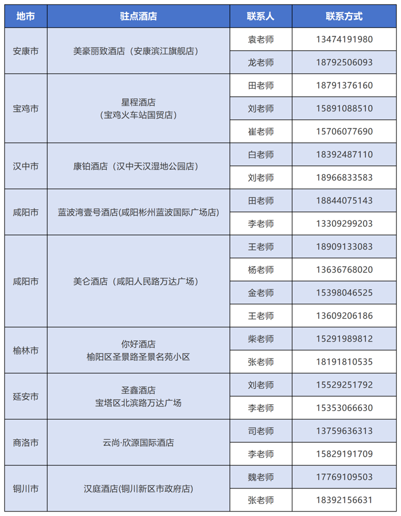 为方便预录取考生报到注册,陕西铁路工程职业技术学院将在部分地市设置报到注册点,学生可携带本人二代身份证原件来校或就近选择报到注册点完成报到注册工作。部分地市报到注册点详见下表: