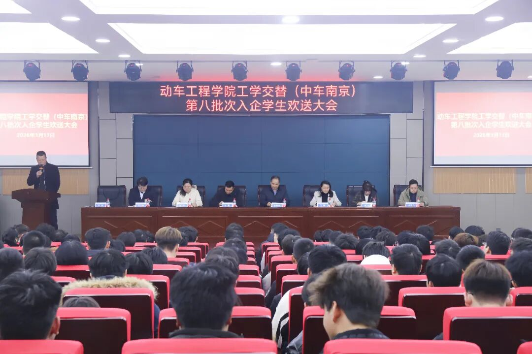 3月13日,动车工程学院第八批次共148名学子启程前往行业标杆企业中车南京,开展工学交替实践。欢送会上,副校长李林威对学子提出“严守纪律、勤学苦练、注重安全、树立榜样”的核心要求,勉励他们在央企平台上锤炼本领、树立表率。此次实践是学校与中车南京长期深度合作的延续,旨在让学生将课堂所学与生产一线深度融合,实现从“校园学子”到“职业新人”的关键转变。